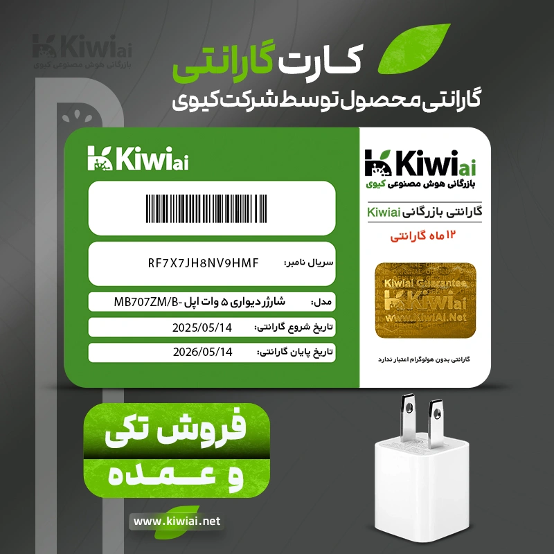 کیفیت و اعتمادپذیری، پایهی عملکرد KiwiAi است. همه محصولات ارائهشده دارای ضمانت اصالت و سلامت فیزیکی هستند. به این معنا که پیش از ارسال، شارژر از نظر ظاهری و فنی بررسی شده و در صورت بروز هرگونه مشکل یا مغایرت، امکان تعویض یا مرجوعی برای خریدار وجود دارد.