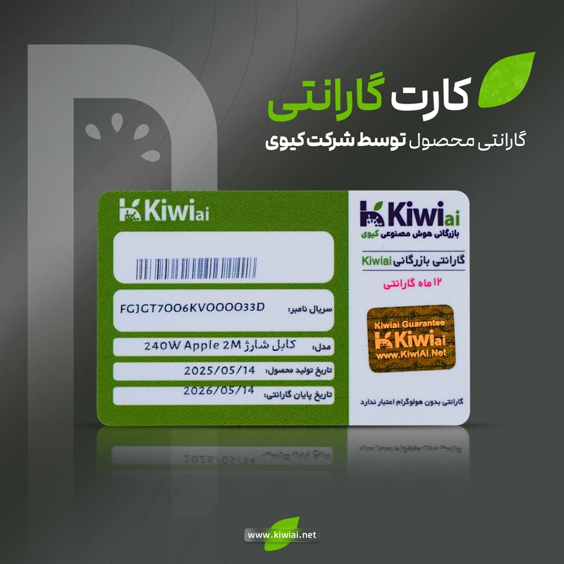 برای اطمینان از خرید کابل اپل اصل مخصوصاً مدل‌های جدید مانند کابل تبدیل USB-C اپل مدل 240W-C طول 2 متر، حتماً به فروشگاه‌های معتبر مانند kiwiAi مراجعه کنید. ما در kiwiAi اصالت کالا را تضمین می‌کنیم و با ارائه ضمانت کیفیت، خیال شما را از بابت خرید مطمئن راحت می‌سازیم.